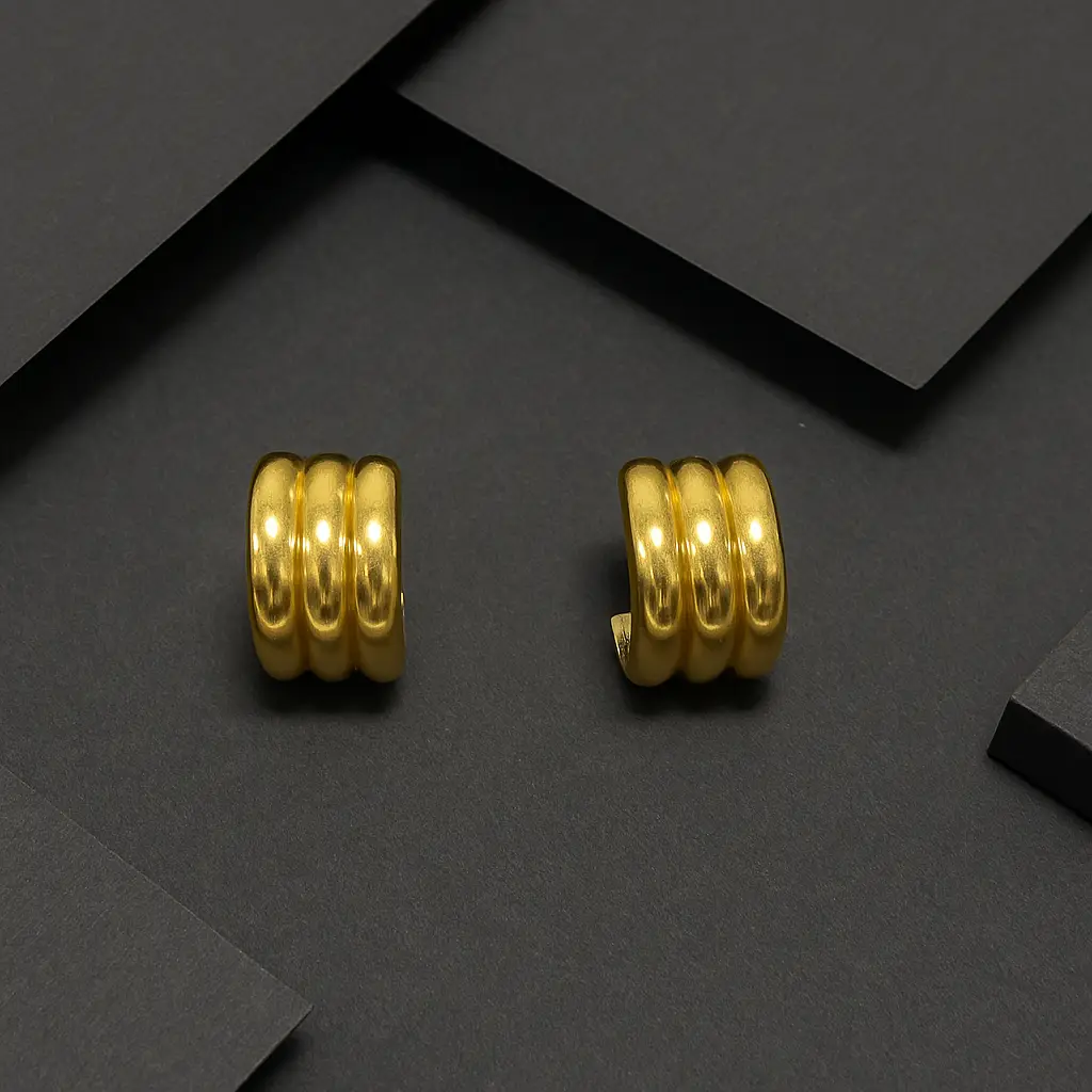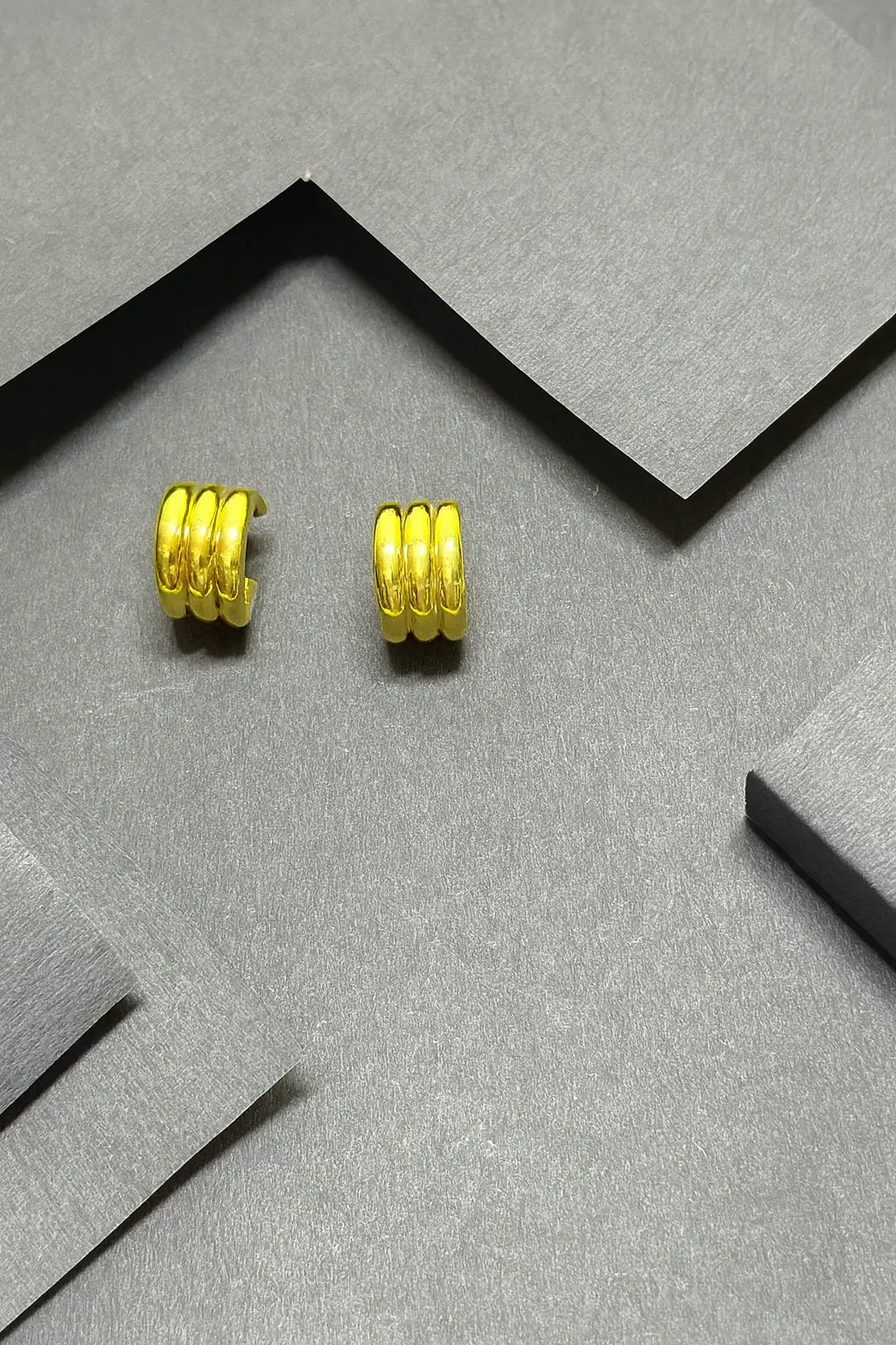 These elegant gold tone hoop studs bring a touch of sophistication to your everyday style. Featuring a triple-layered design, these small hoops are perfect for office, casual outings, or festive occasions. Lightweight and easy to pair with any outfit!