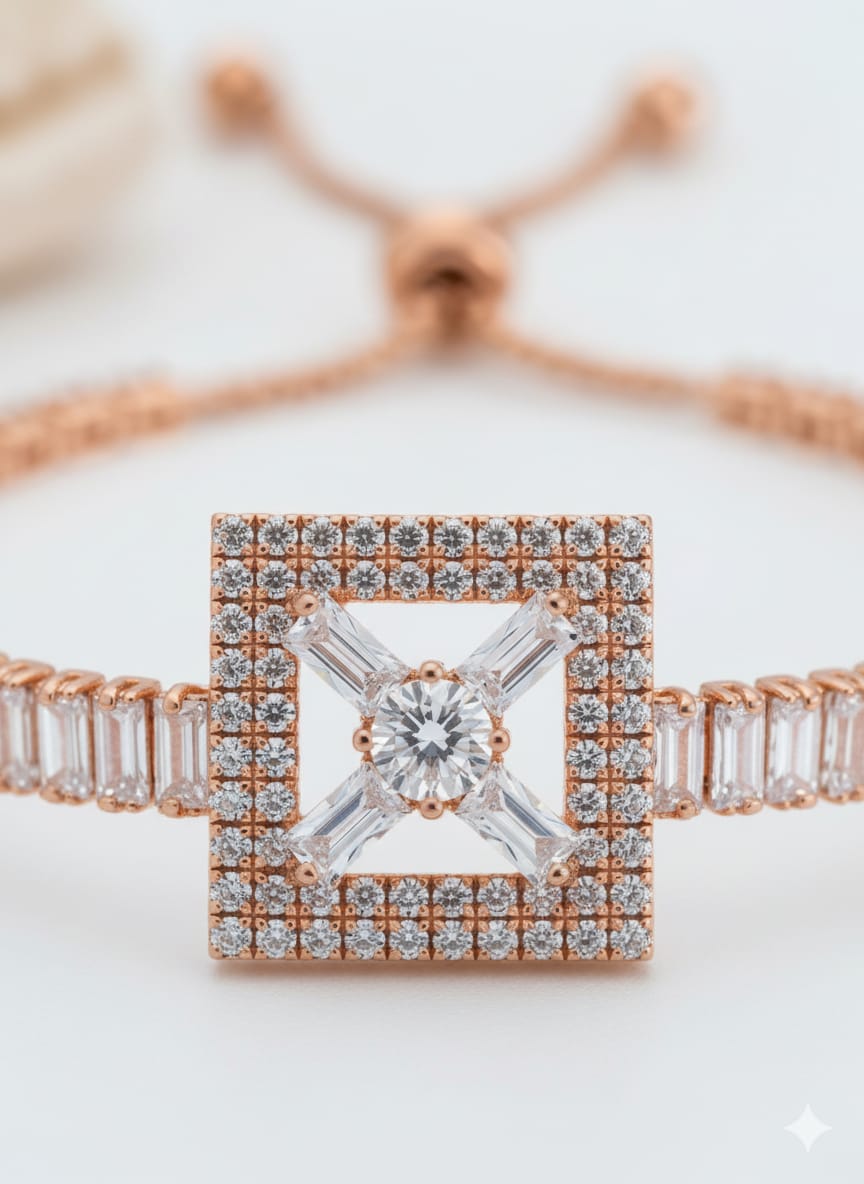 Add luxury to your collection with this Luxury Rose Gold Diamond Bracelet for Women, a perfect blend of elegance and craftsmanship. Designed with high-quality crystals and a premium rose gold finish, this bracelet enhances every outfit β from festive looks to everyday fashion.