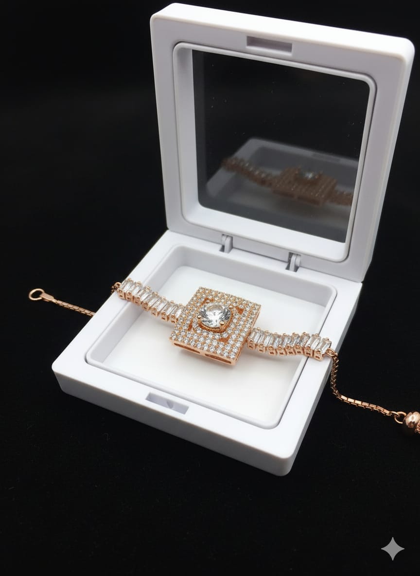 Add a touch of elegance to your look with this Luxury Square-Cut Rose Gold CZ Diamond Bracelet, designed with premium shine, adjustable fit, and sparkling CZ stones. Perfect for party wear, gifting, and everyday style